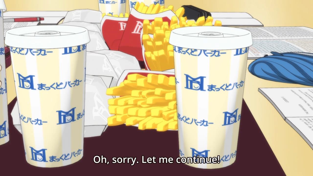 Have you seen their bentos though whenever they have the obligatory bento show off moment? It might all be healthy food, but it’s still a lot of food. If anything, eating some fries at “Mickey D’s” is far less caloric than the shit they carry with them to school everyday.