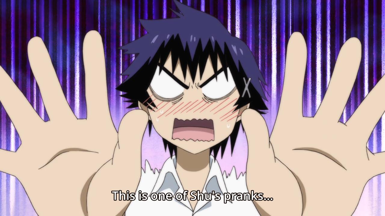 • Shu, who’s probably in the know about everything, asks Raku a rather suggestive question at just the right time and nearly gets his best bud to confess his love for Kosaki. Not nearly. He practically does. Everyone hears it loud and clear too, especially Kosaki. But then she just brushes it off.