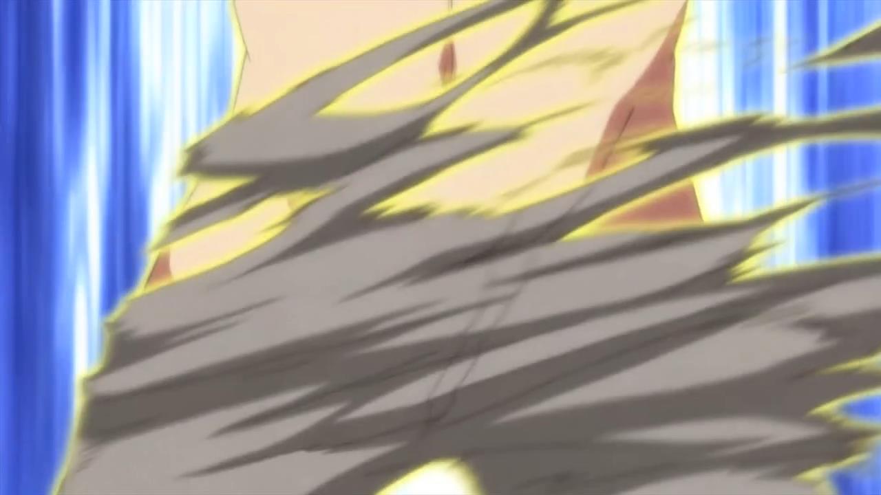 And then his pants gets torn to pieces right before our very eyes. Why? So that half of a toga can appear in its place. That’s… that’s a waste of a perfectly good pair of pants. I mean, it was probably tailored and shit too. It’s not like pants are hard to take off unless we’re talking about tight-fitting skinny jeans. In the end, this is what we get: