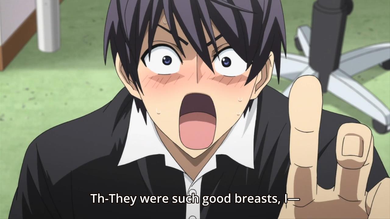 So I guess one of the big themes this season is that we should grope women’s breasts for a greater cause. Right off the bat, our mangaka informs his assistant that he wishes to “grope some breasts.” But don’t take it the wrong way!
