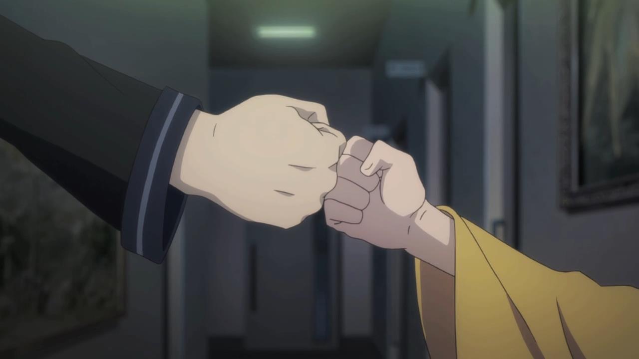 Sure, it’s a tragedy that Enju’s lost her friends at school. The solution to said strategy isn’t to “bravely” take the reins yourself and become everything in the world to the girl. One of the solutions is to help her create a strong sense of self so that her emotions aren’t completely contingent on the actions of others. Another solution is to help her find a friend she can safely befriend, i.e. if she loses this friend, she doesn’t also end up losing her home. This is why it is wrong to focus solely on the relationship between her and Rentaro. Too much is riding on this relationship. That’s why I took such an exception with the cold opening. Sumire’s message to Rentaro oozes of self-indulgent martyrdom: “It’s me… I’m the only one who can save her soul!”
