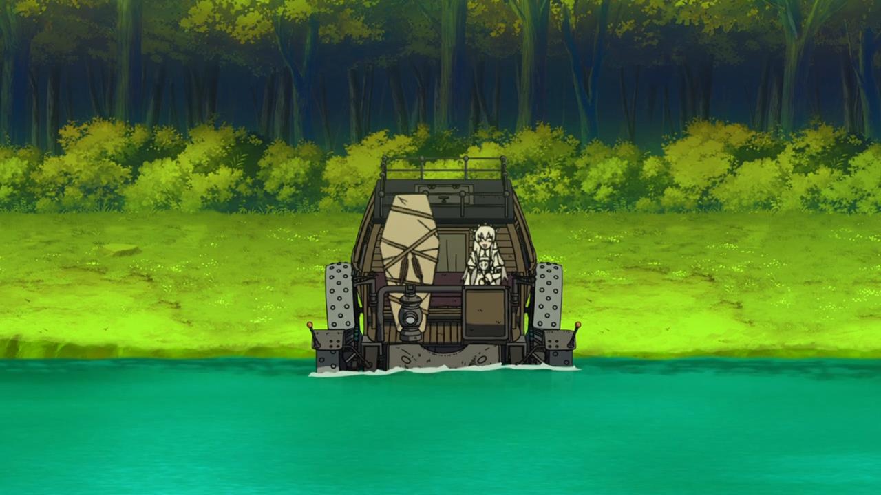 Toru, Chaika, and Akari arrive at the city of Ipsom in search of Dominica, the next hero in possession of Emperor Gaz’s remains. Unfortunately for them, Gillette and company are not too far behind. A mysterious informant directs Chaika and her retainers to a nearby forest where they will find both a vehicle to suit their needs as well as the hero they’ve been searching for. While driving through the forest at the dead of night, a pack of Orthroses, some sort of electrified canine, attacks the group. Toru splits off from the girls in order to hold the wild animals off, but he quickly gets overwhelmed. Out of nowhere, Dominica shows up and saves his life.