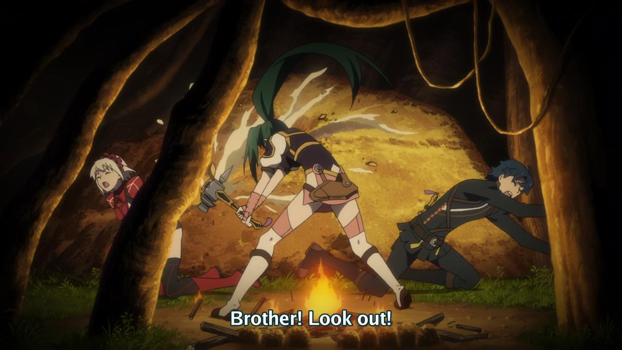 • You can almost predict when Akari will show up. Did Toru just say something heartfelt to Chaika? Then right on cue, Akari will crash the party. She’ll also do something to show how eccentric and oddball she is. Finally, she’ll cap off her entrance by alluding to the forbidden love between her and her brother. This week, she dangles a gecko between Toru and Chaika. See? Such a wacky girl.