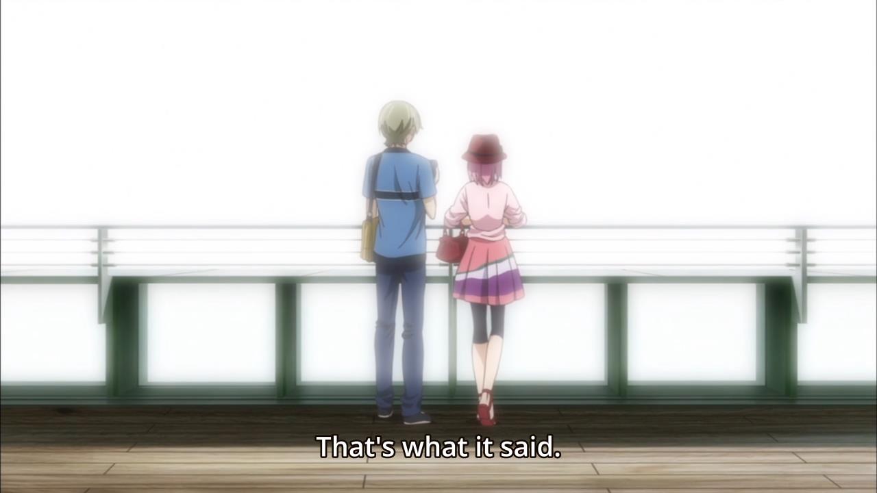 In fact, the rest of the episode is absolutely wooooooothless. A bunch of classmates invite Kuroha to a karaoke bar. As such, Ryota cuts his tutoring session short just so he can stalk Kuroh–… I mean, make sure everything with her is okay. After all, she’s hanging out with a bunch of people who are not him, and you never know what’ll happen if a haremette strays too far from the rest of the flock. She might liquefy or something. Oh, and in case you were wondering, yes, the girl that Ryota tutors is also in love with him. Continuing on, Ryota finds his harem in nothing but their bathing suits the very next day. I think Kazumi ends up kicking the hero in the face, but I’m not sure. At this point, the episode is nothing but a blur to me. The two of them eventually end up going on a “date” to Akihabara. This excursion into the otaku capital of the world includes a discussion on whether or not eroge-lovers are virgins, the worthiness of a girl’s virginity, and last but not least, a wonderful shit-course meal at a maid cafe. Nevertheless, this is the most fun Kazumi has ever had in her life, guys. Coming to Akihabara and eating overpriced omurice that you could make at home in just ten minutes is literally the best time she’s ever had. Whoo!
