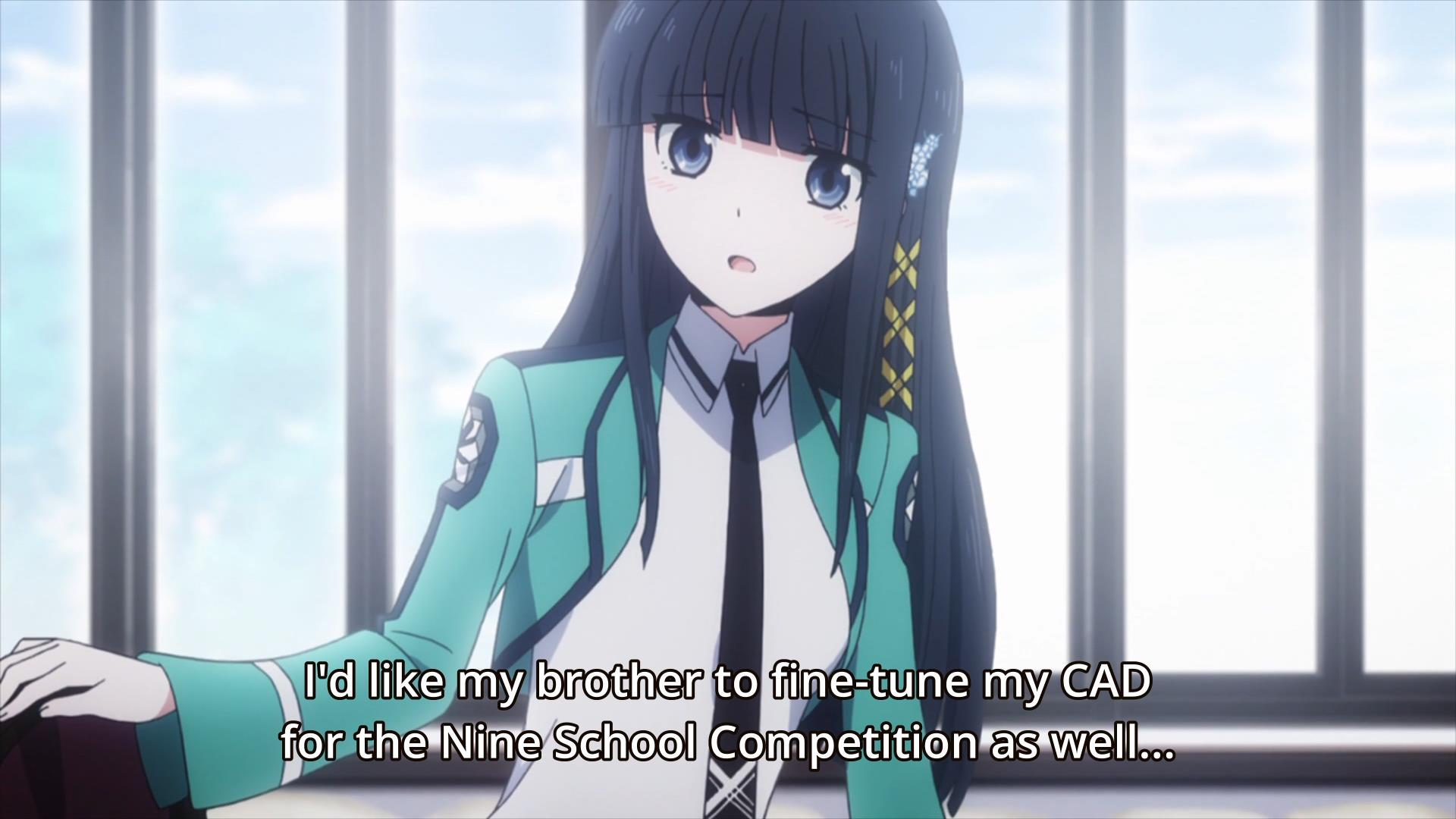 The dude, as Mibu extensively informed us last episode, is merely mediocre and not of superior virginal purity. Nor does he have Tatsuya’s superior physique. It is thus not necessary for us to see him in a state of undress. His mediocre CAD can be sufficiently attuned to his mediocre magic without inflicting any mediocre nudity on the audience. All clear?