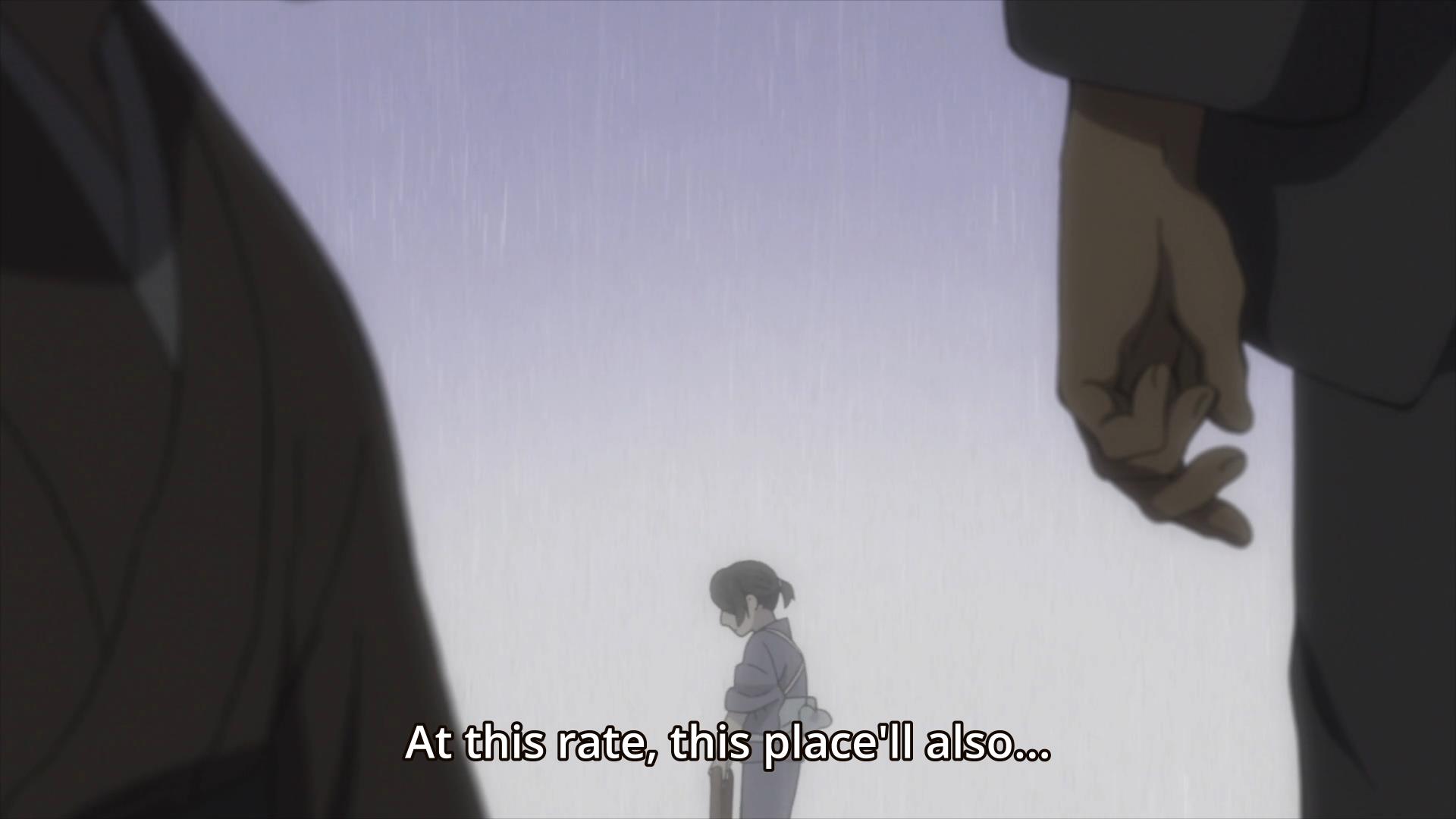 Once in a while, Ginko doesn’t have a cure. There’s nothing he can really do to help Teru. She’ll just have to carry the Amefurashi, a mushi that can bring forth the rain, within her body until it eventually dies. This is thus an episode about acceptance. When things are out of your control, you must simply accept your fate and carry on. Having said that, acceptance is difficult. As thinking creatures, we can’t help but create patterns and narratives out of nothing. If it begins to rain too much, perhaps… perhaps it’s somebody’s fault. Oftentimes, we’ll blame the devil or even the demons that plague our land. Sometimes, innocent individuals get caught up in the blame game. Say, don’t you think rain seems to appear wherever that little girl happens to be? Perhaps it’s her fault.
