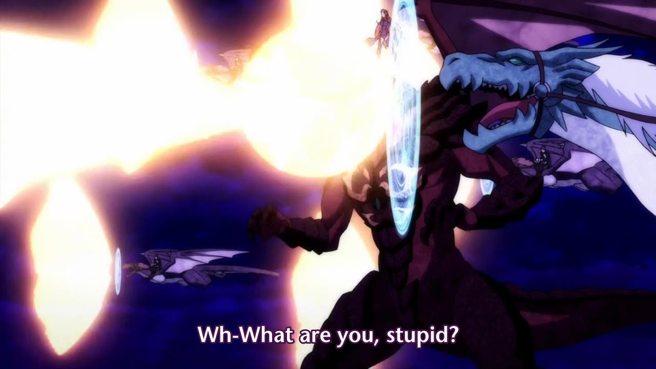 — When the anime cuts back to Ash Blake and his haremettes, the girls are being “attacked” by tentacles too, but it’s never quite clear what the zombie dragons are trying to do. Are they trying to impregnate these girls in order to give “birth” to more undead dragons or what?
