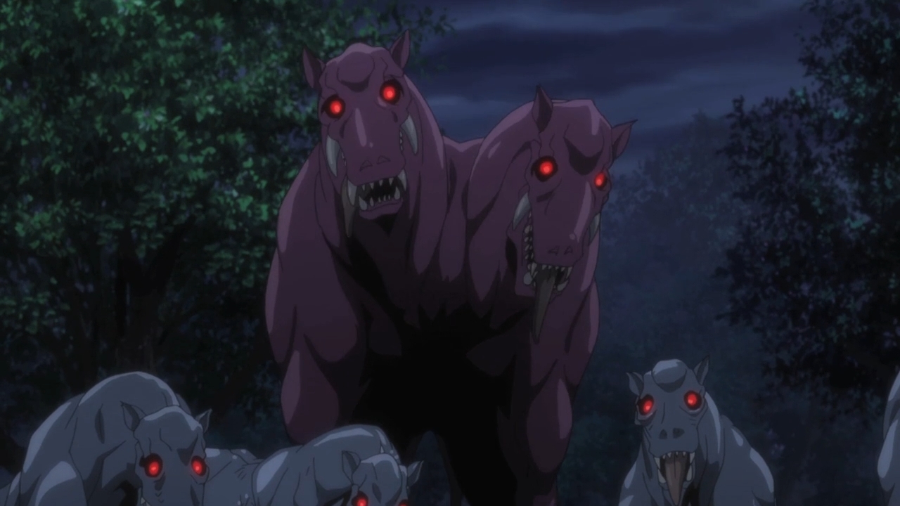 — It doesn’t take very long before Rentaro is beset by a bunch of shiny Gastrea wolves. The biggest, baddest one shows up, and it looks like our hero is done for…