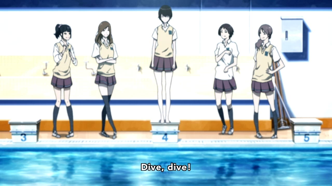 Does she have it within her to put millions of lives in danger? She probably doesn’t think so, and few of us would say that about ourselves either, but again, that’s the point. Even though it is still very early in the story, if there’s anything Terror in Resonance wants to say, it’s that this could’ve been one of us. Anyone could find themselves taking a plunge into the abyss, and the real problem is that the rest of us are not paying attention. Early in the episode, we see a bunch of mean girls taunt and bully Lisa. “Fly high,” the girls say, but in reality, they want the girl to embarrass herself and jump into the school pool with her clothes on. They were nice enough to let her take off her shoes and socks, I guess. In a way, I suppose Twelve ends up saving her by taking the plunge into the pool himself. In the distance, we see Nine observing the entire situation stoically. This scene foreshadows a similar scene near the end of the episode.