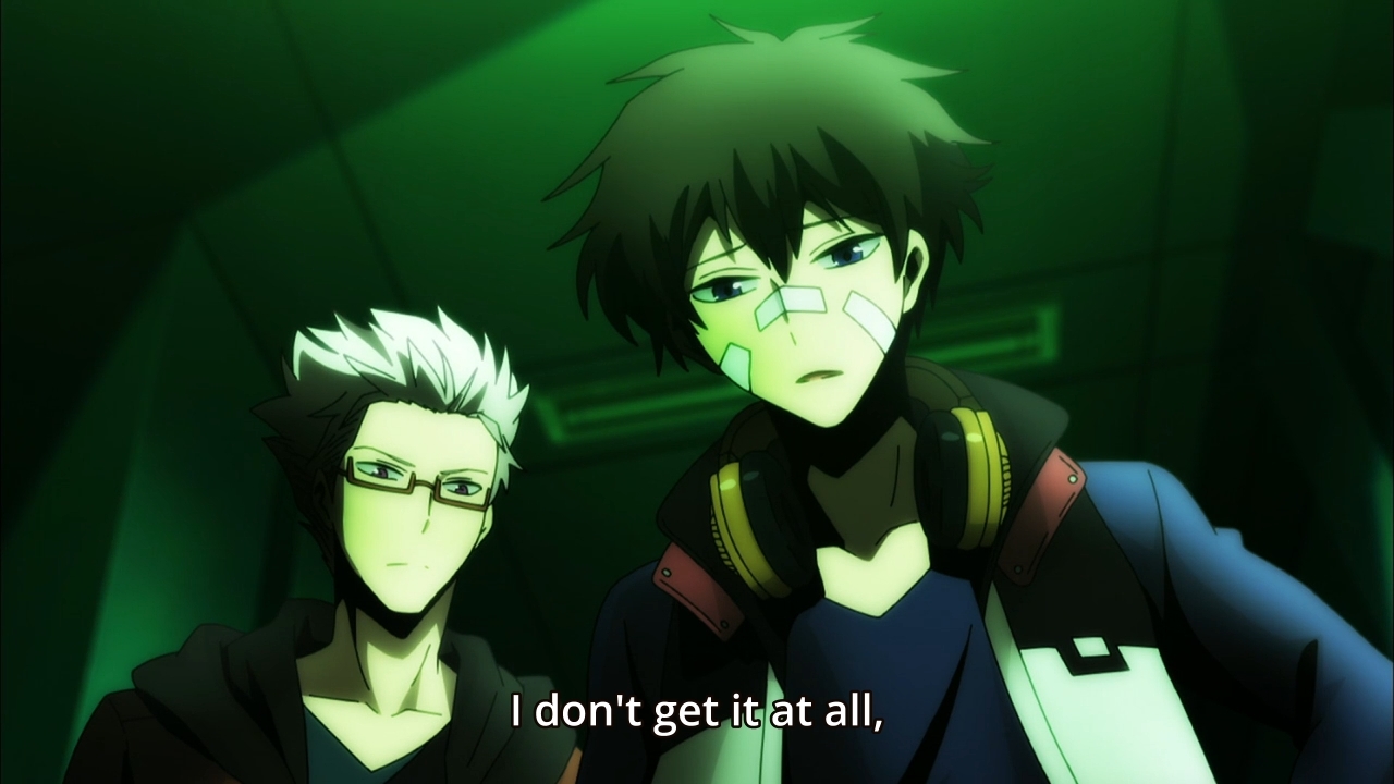 The main character was losing… until he was not. But other than the Rhyme battle at the start of the episode, nothing else really held my attention. In fact, I just had a hard time staying interested in the plot. It’s still all over the place. Wait, no, it feels like something that would make sense if you’ve played the visual novel before. With a game, you get to advance the story at your own pace by exploring the city and talking to the characters whenever you so choose. For an adaptation, the anime just loses me. The characters allude to people dying constantly, but we don’t actually see anyone die. As a result, the mystery feels distant and far off, i.e. something that’s constantly talked about but never experienced. To compound matters, the animation took a huge hit this week. Aoba’s facial expressions are definitely something else in this episode. As an aside, Ren might’ve been cute if it didn’t sound like a 40-year-old man.