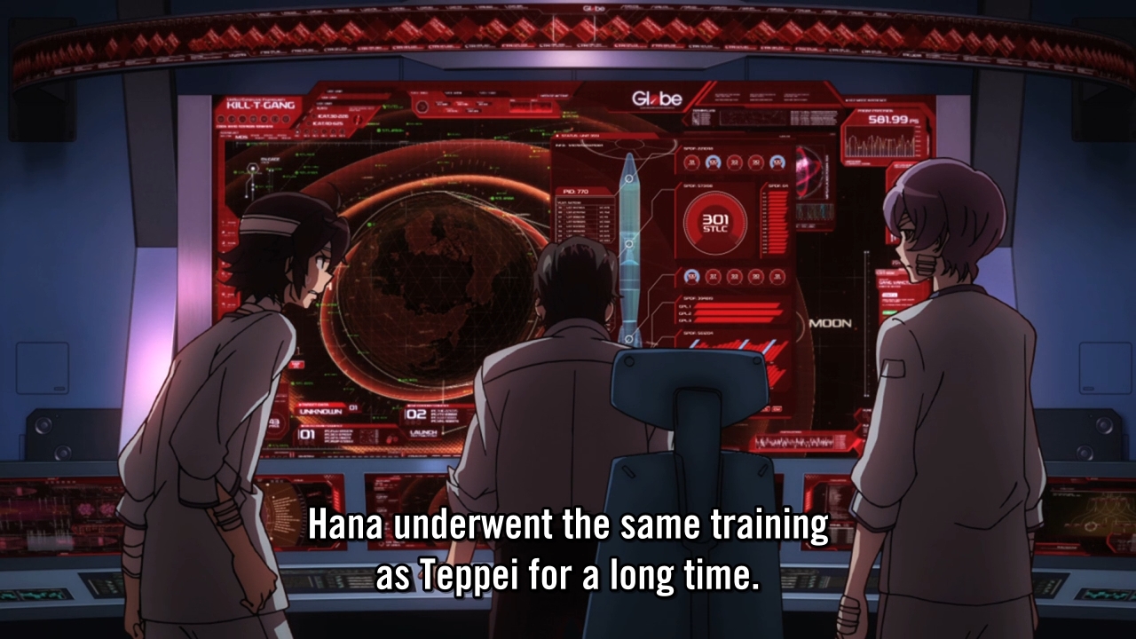 Oh. Well, that was easy. I thought this was a team, though. I mean, I understand how Hana getting herself a fancy-ass mecha may come as a surprise to us, the audience, but why is it also a surprise to Daichi, the captain of the team? Why would the captain not be privy to the fact that one of his team members will be launching off into space by herself? Not only that, how does she know how to pilot a mecha? Don’t worry, we have a single throwaway line to answer that exact question: