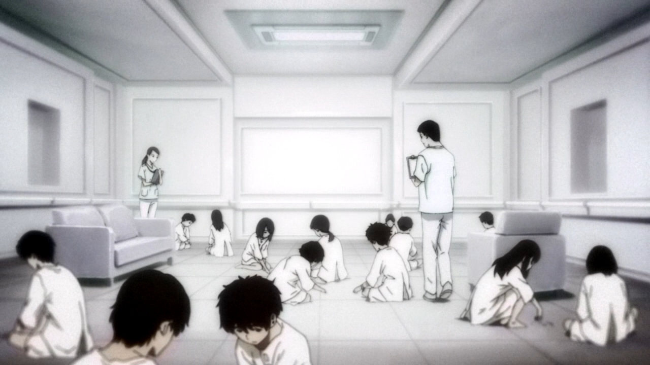 Mukasa wonders out loud, “Anyway, don’t you think Sphinx is lonely, too? They probably just want attention.” It’s funny how the most clueless guy in these stories will typically to hit the nail right on the head. Shibazaki’s corpulent co-worker is right: the boys are an extreme example of attention-seeking teenagers. And as always, the problem on our hands is that they don’t care if the attention they get is good or bad. They just want attention period. They just want to open up a dialogue even if it ends up being an abusive shouting match. We’ve all seen or heard about it, i.e. young people acting out in self-destructive ways if they feel as though they’re being neglected. In this week’s episode, we are starting to learn just exactly how neglected Nine and Twelve — and other children like them as well — really were. In Nine’s flashback, we get a glimpse of what life was like at that mysterious institute we’ve only heard about till now. One of the “caretakers,” a lady, told the kids, “A name is usually a gift of love. But for you who have been abandoned, love does not exist. Signs of pretense like that must be eliminated. I will now give you new names to be called.” Needless to say, this is a form of psychological and emotional abuse.