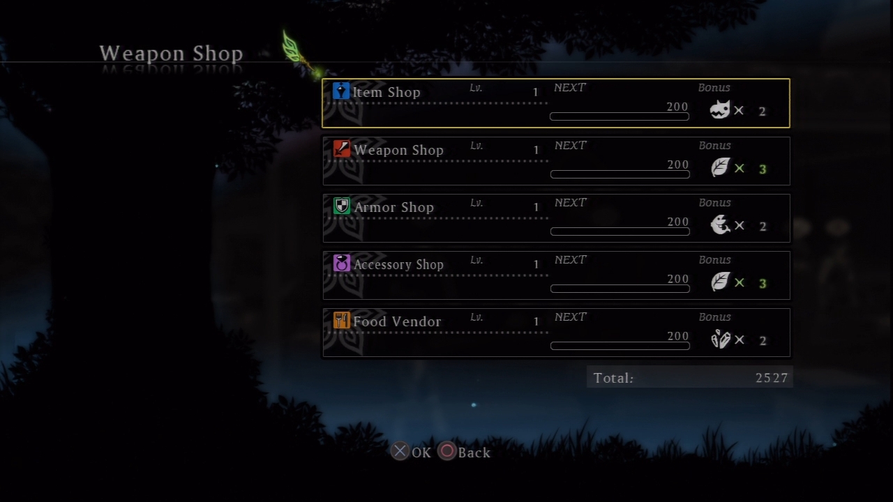 You can, however, give them to these shops, and this will level the shops up. When shops level up, they sell better items or give you a discount on older items. If you don’t have any items on you, however, you can still brute force the process by handing these shops your hard-earned cash. Yes, gald will do the trick as well. Hell, simply buying stuff will help level these shops up. There are actually five different shops to upgrade. I’m lazy, however, so I’ll just focus on upgrading my equipment.