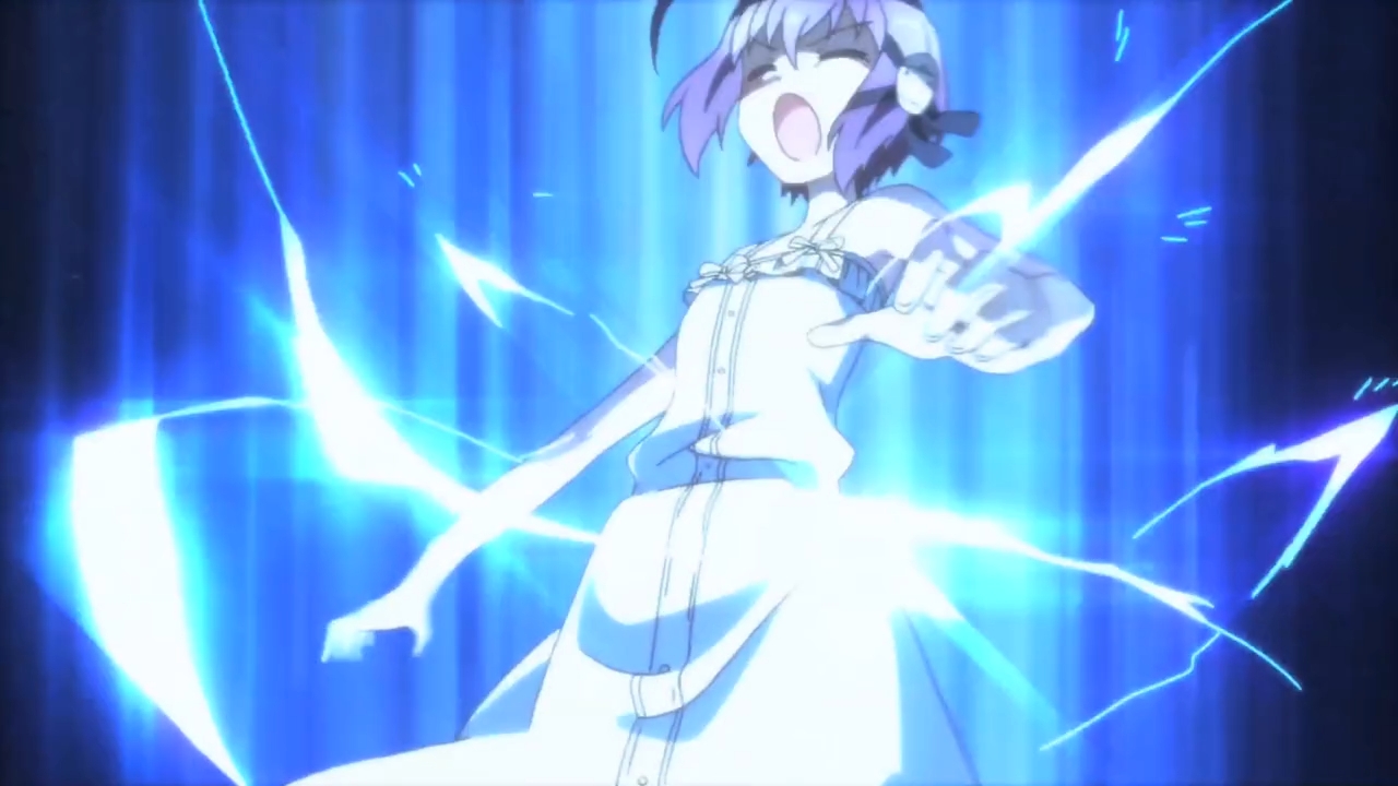 19:38 — Sanae sneaks up on the two of them, but when she surprises them, the harem lead’s special charms shock the ghost and send her flying to the ground…? Has he been carrying those wards on him this entire tim-… actually, I don’t care. Anyway, Sanae storms off because she’s offended he even has those charms in his possession. How many more times can the guy piss off one of his haremettes in just a single episode? Seriously.