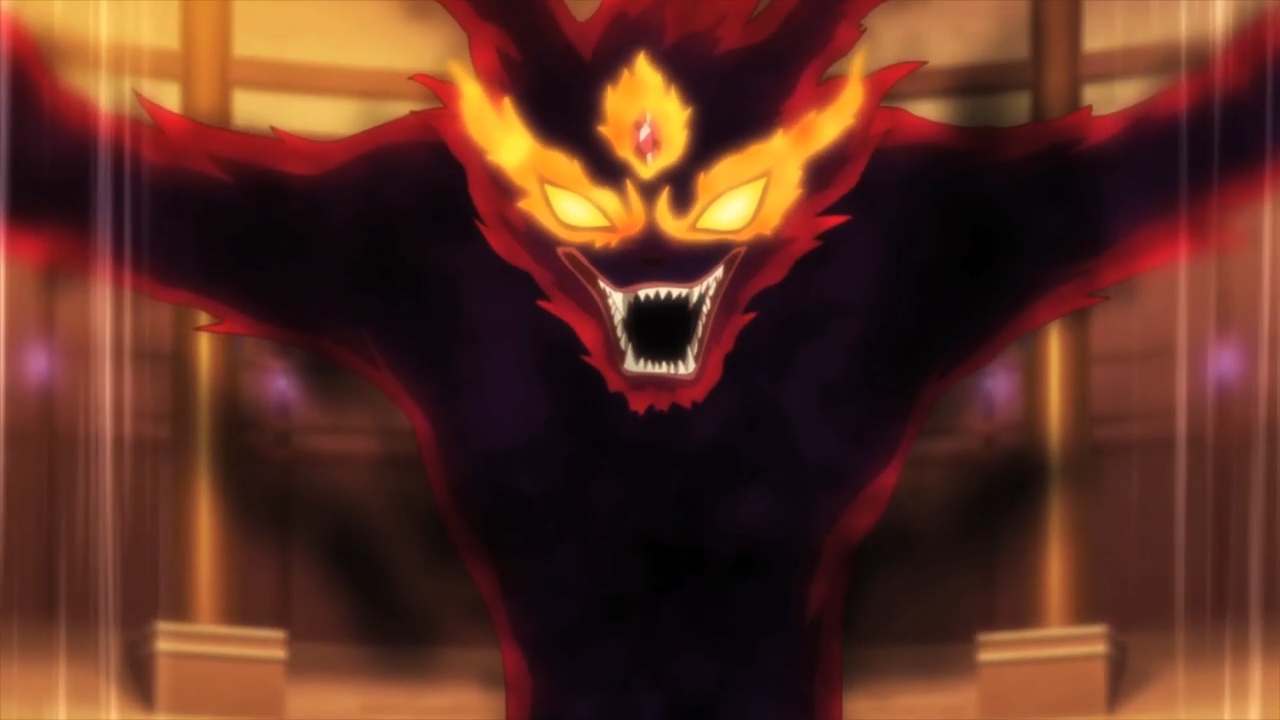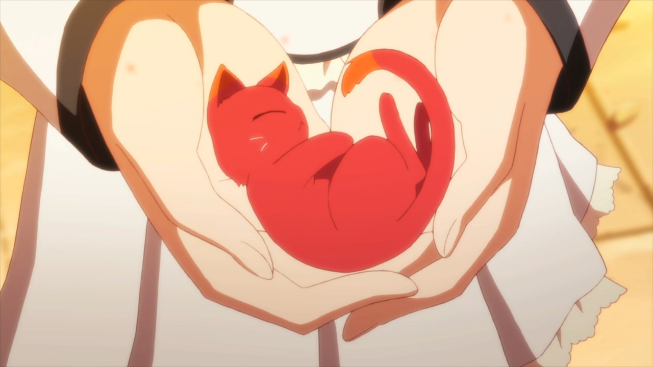 — In just a single strike, however, the harem lead destroys the red crystal on the twisted Scarlet’s head, and that is enough to turn the mad spirit back into a cute fire-cat. So much for that, huh? Obviously, if we waste any more time with this scene, we won’t be able to have all the juicy harem hijinks that are soon to come.