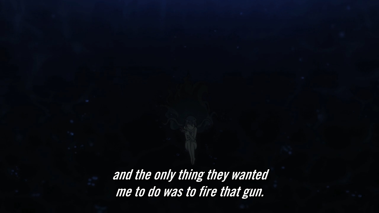 — In any case, because Hana is now back in the Blume, she can’t come back out… unless Daichi comes to get her? Whatever that even means… The show makes it sound like she’s making a huge sacrifice, but she’s right! Since this is an anime, if the male protagonist dies, the female protagonist would just die from heartbreak anyway. And hey, she’s naked and floating in a sphere of liquid again! What’s that? You ask if this is objectification? Of course it is! She’s a fucking ship now! You can’t get any more objectified than that!