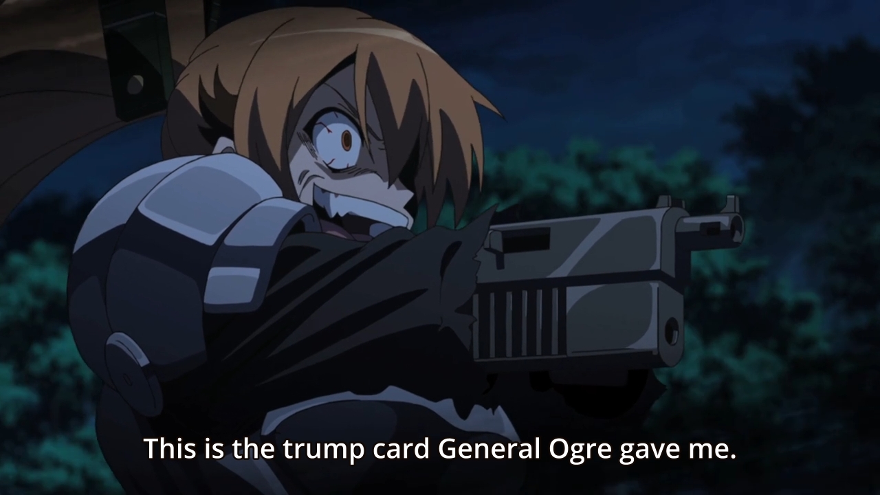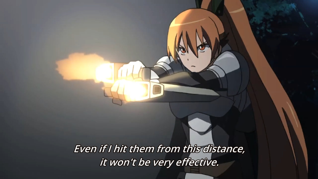 Yeah. Those guns are certainly the biggest joke of current episode. As we can see, they are too big to fit in her slim arms, which she originally has. Where did all those material and metal come from? LOL. The stupidity of AGK doesn’t end here of course.