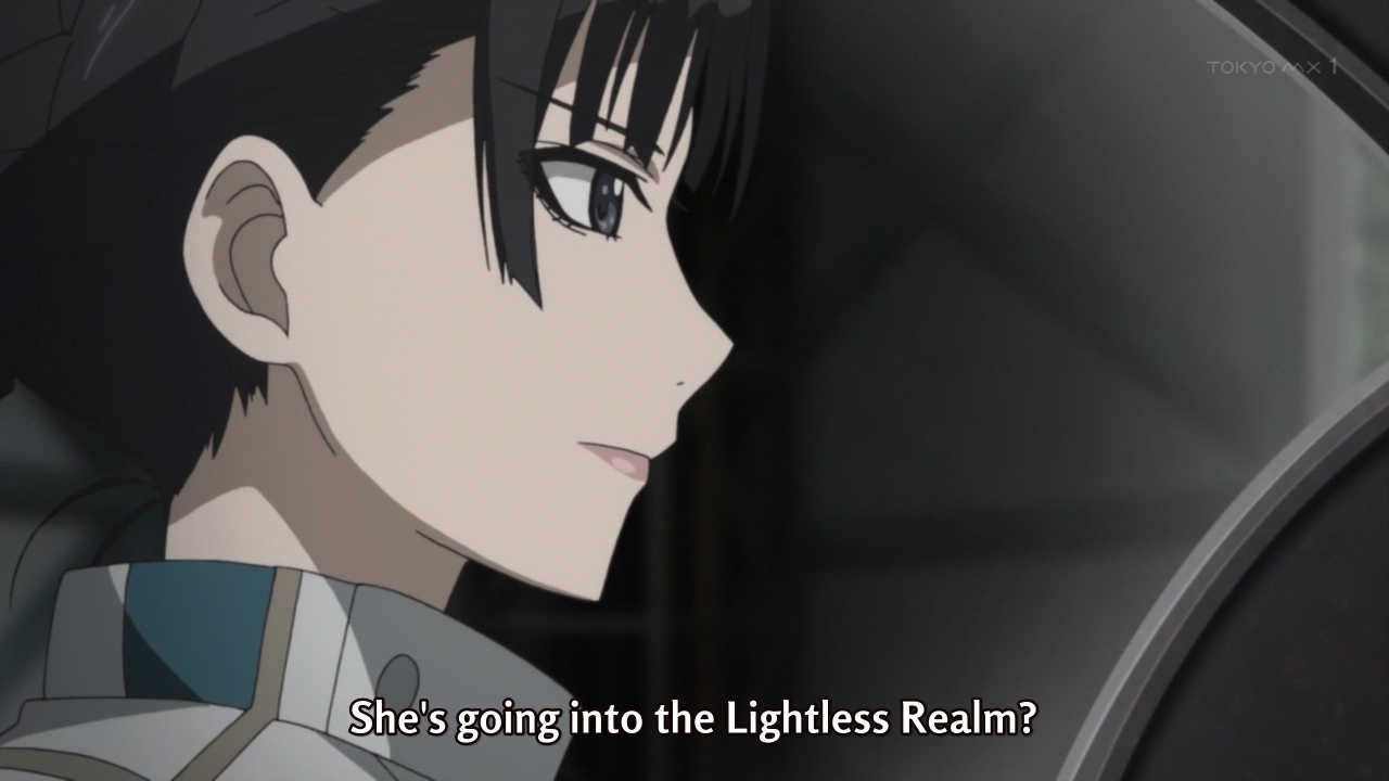 — Elsewhere, Suzaki is preparing to enter the Lightless Realm by herself. She thinks if she only stays in there for an hour, she’ll be fine. Seems foolhardy to me. Sure, it’s their last resort, but if these kids and their fancy mechas can’t go in and out of the Lightless Realm in a timely matter, it doesn’t make much sense that some lady can just waltz in and out of the place herself.