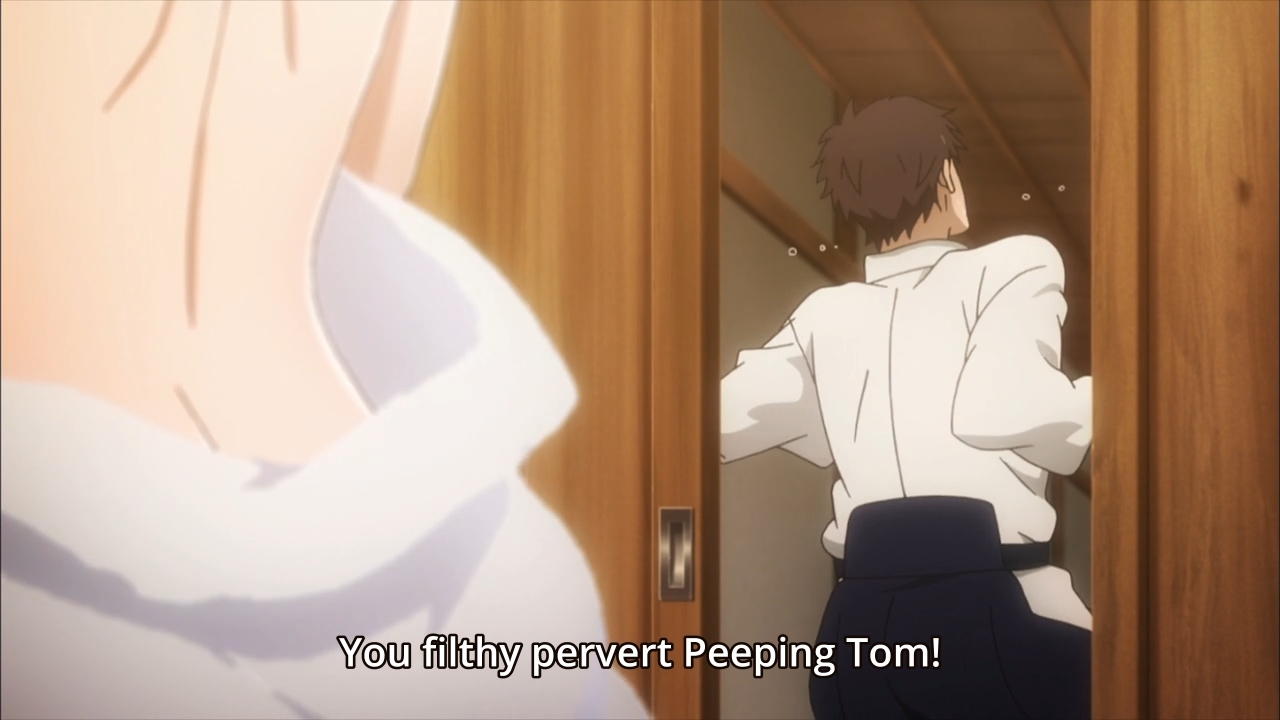 — Afterwards, we get shots of Jumanji and Mikihiko briefly training. Then Mizuki gives Mikihiko some onigiri. They then blush because their hands briefly touched. She gets so embarrassed, she tries to run away. She trips, however, so he catches her… BY THE BOOBS. And that’s how the episode ends. That’s how the 21st episode ends. Chinese badmen in the country? Fuck that, gimme a handful of tits instead!