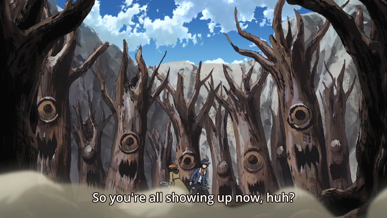 — I then get to watch Tatsumi and Wave find off a bunch of sentient trees… one-eyed, walking pieces of wood… there’s a joke in here somewhere.