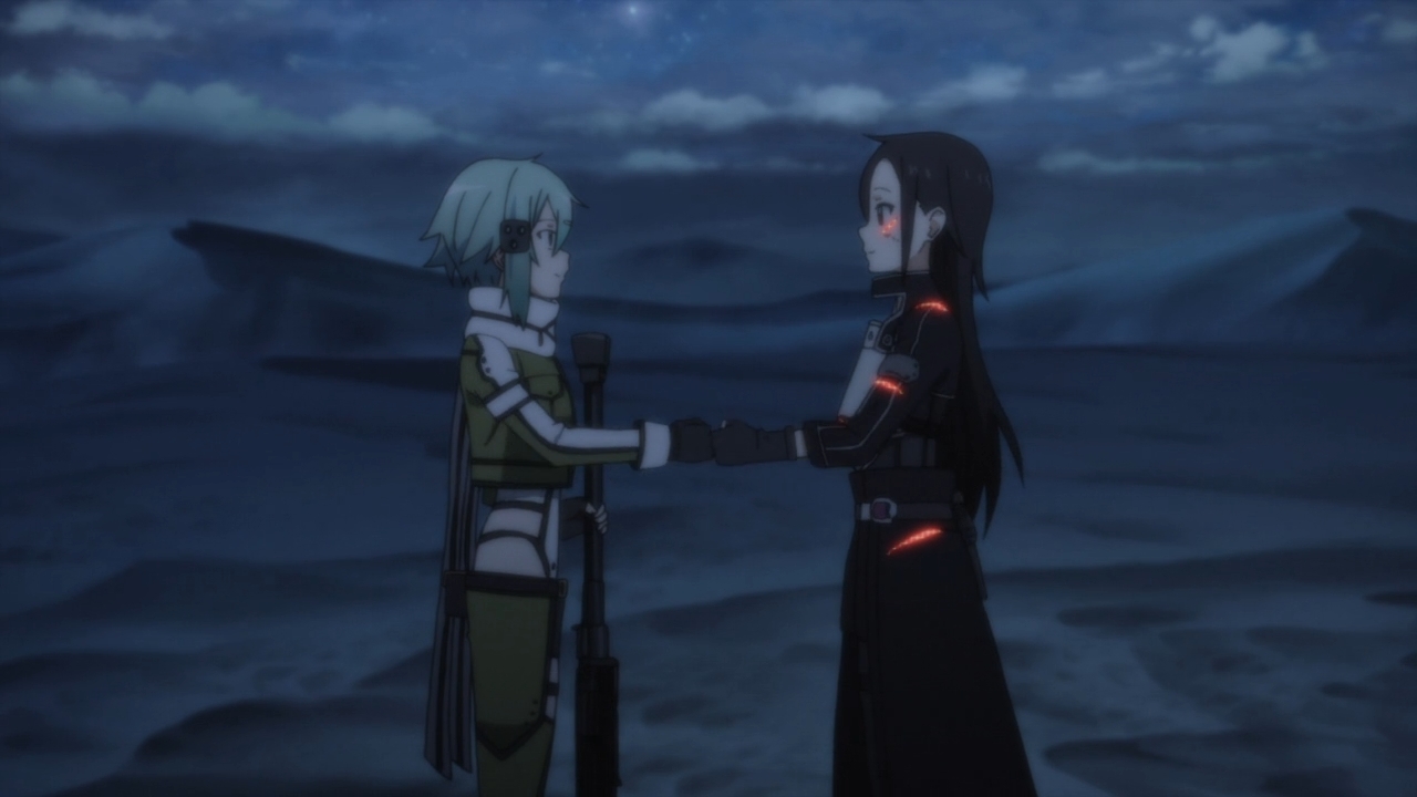 Yeah, mate. Great post and I’m looking forward to how they’ll close out this nonsense next episode. I can guarantee it will feature Sinon crying into Kirito’s chest, and then Asuna will show up and the hug will have to part. Sinon will be sad but happy for Kirito, and yadda yadda.