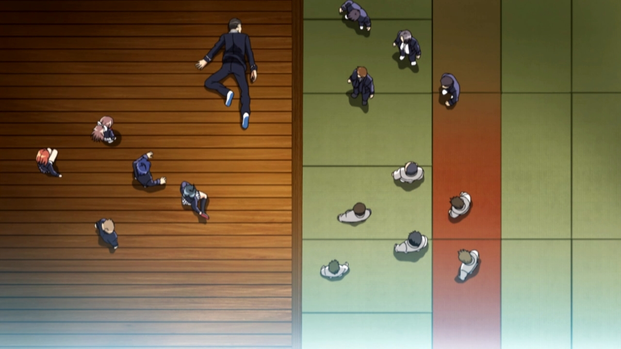— A JB calls Yuuji, and tells him that there’s work to do. He thus pulls out a fucking sniper rifle from beneath his bed. Hilarious. Basically, after twenty-plus minutes of constant panty flashes, all of the potentially interesting character development is squeezed into the last four minutes of the episode. Pure genius storytelling, you guys.