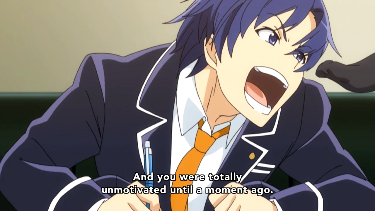 — Just like that, the credits start rolling. And during the credits, Yuuji speculates that the girls must be masturbating in their rooms, because homework wasn’t assigned today. Smart guy.