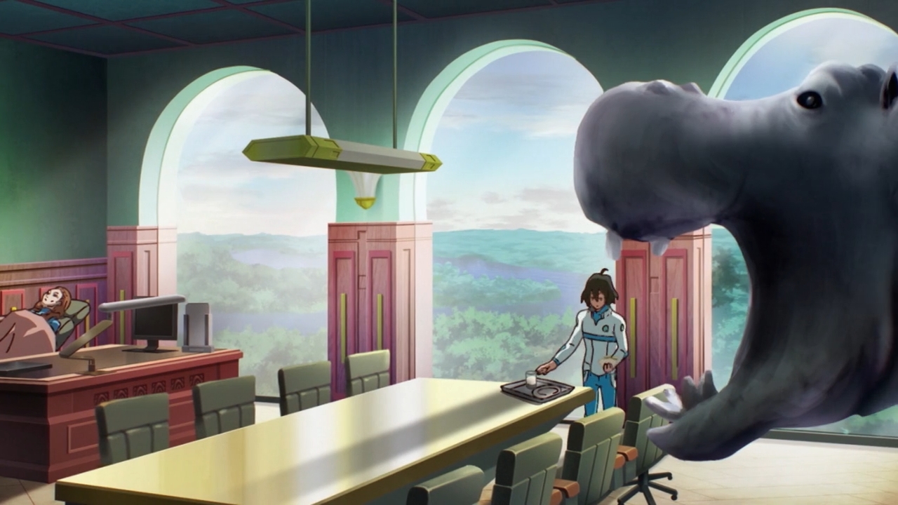 — Who the fuck would have a giant hippo head mounted on their wall? Bellri’s mom, that’s who. Naw, it’s just more Tomino craziness.