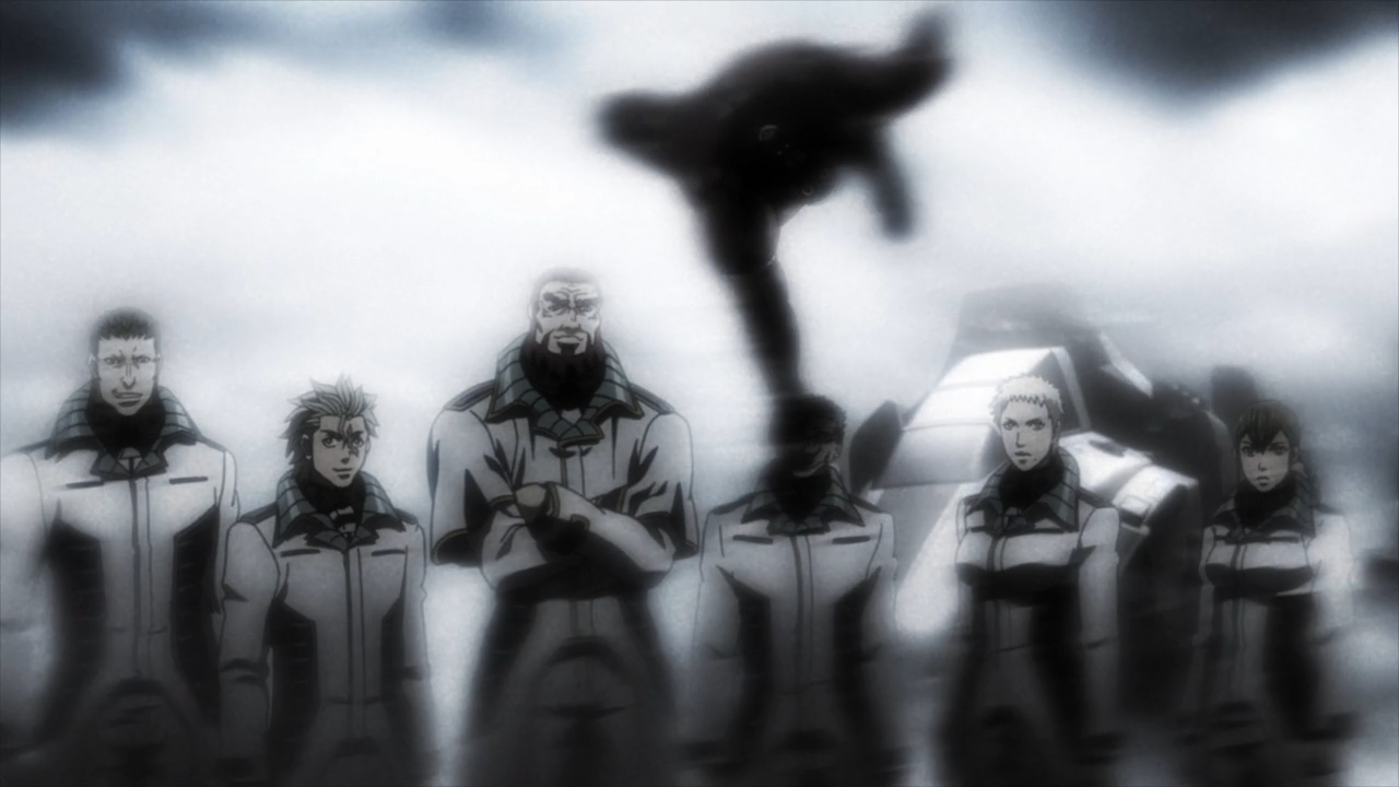 C’mon, man, this isn’t action. I want action, not a shounen circlejerk about how fucking powerful these officers are. Maybe it’s like this in the manga, maybe it’s not. But even if this is how it is in the manga, so what? In that case, the studio should’ve taken some liberties with the adaptation to make these scenes a hell lot more interesting to watch than they are now. ‘Cause c’mon, we’re not watching Terra Formars for the deep characterization. We’re not watching it for the intricate plotting. We’re certainly not watching the show for its themes. We’re here to watch people fight roaches! But after three episodes, the show can’t seem to deliver on this front whatsoever.