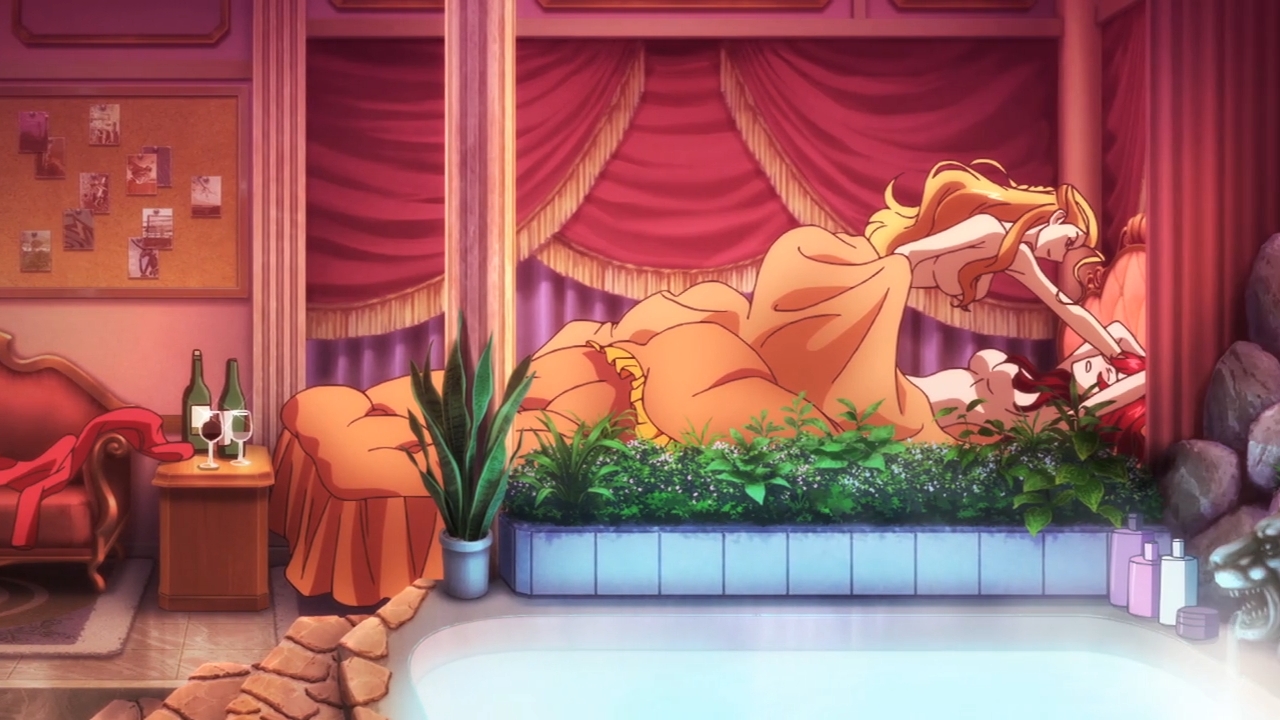 — Right off the bat, we get some yuri action in about the trashiest way possible. The taller girl even licks her lips in anticipation of “meeting” Ange. What? Did you think the sexual assaults would be limited to just the first episode and the first episode alone?