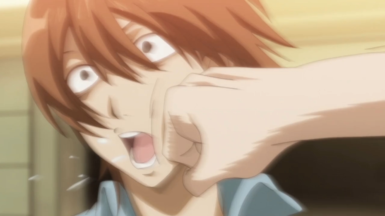 Needless to say, Kyouya had followed Erika and Yoshito, so he gets to punch the guy out for insulting her. He ends up looking real cool in the process, doesn’t he? After all, he had defended her honor, so you might even say he cares about her! Hm, nah. I mean, he treats her like shit the majority of the time, so you can’t possibly tell me that one good deed is enough to turn this all around. That’s what I’ve been trying to say this entire time. Get to know someone. Get to really, truly know them. Then once you do, maybe you can start falling in love with them. So after two episodes, what do we really know about Kyouya? Well, he likes to boss Erika around and call her a dog. Not just any dog, mind you, but his dog. He’s the master and she’s the slave. That’s what we know. But punching Yoshito sure does look flashy, doesn’t it? It leaves quite an impression, doesn’t it?