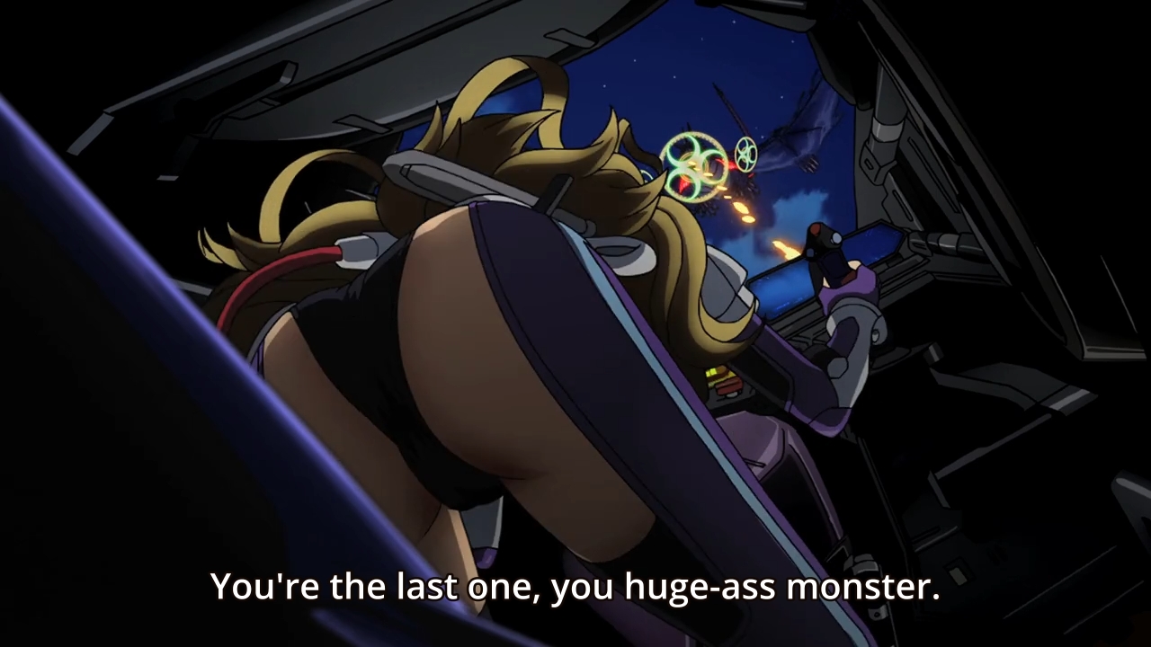 — All this dogfighting against the dragons wouldn’t be half bad if not for the anime’s constant need to shove the girls’ crotches in our face. Yo, get your hideous ass out of the way. I can’t see shit!