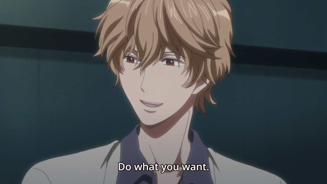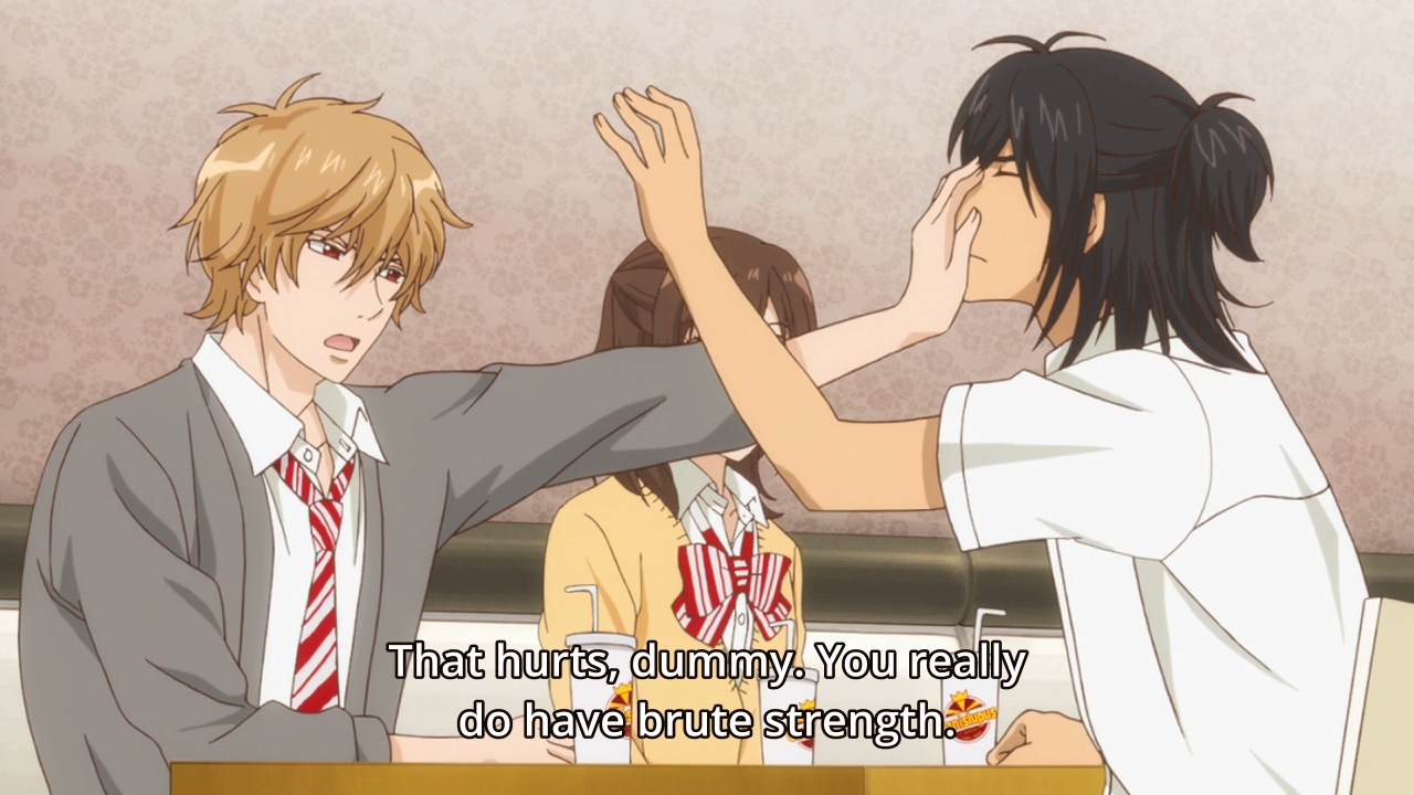 — Thinking that Takeru is a nice guy, Erika pours her heart out to him. The former immediately wants to beat a “change of heart” into Kyouya. Uh-huh. But it gets even better when Erika stops him and say, “I’m not trying to fix his warped personality.” Everyone in this show is fucked in the head. Except Ayumi, of course. Then again, she’s still friends with Erika, so who even knows? I don’t think I could stand watching a friend throw herself into a toxic relationship.