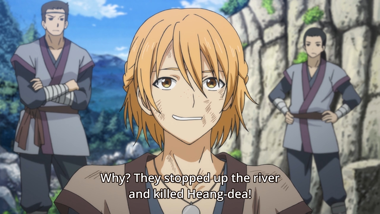 — Mun-deok doesn’t want to pick a fight, but someone in the background goes, “Why? They stopped the river and killed Heang-dea!” Wait, what?