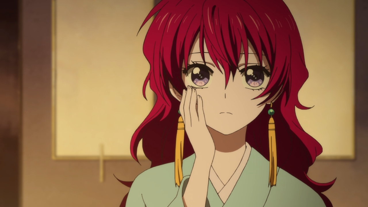 — For now, Yona has to disguise herself as Rina. I would like to see the show go even further with this. The princess should really do more to change her appearance. Perhaps cut her hair, do her make-up differently, or take off those cumbersome earrings. Seriously, who sleeps with tassels on them?