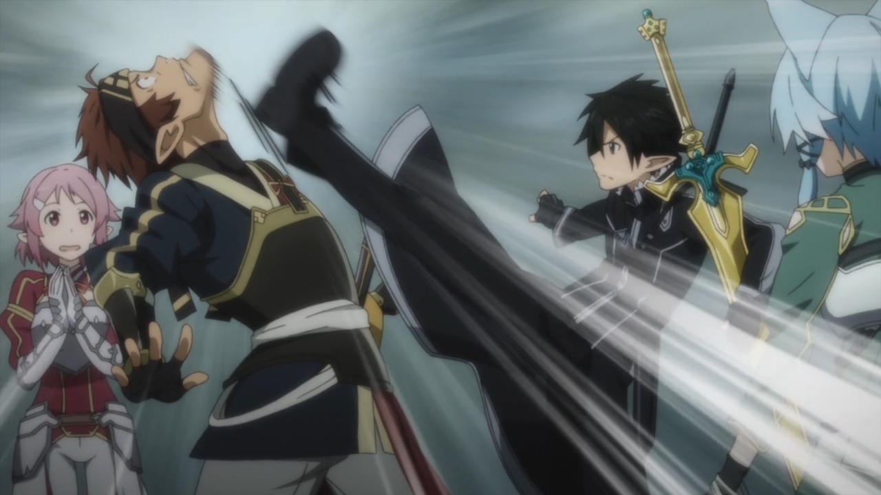 — Naturally, Kirito can’t do anything about the fact that his harem is unhappy. Oh well, he can do the next best thing: take his rage out on Klein!