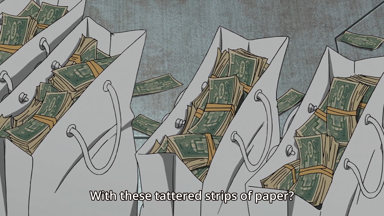 And its horrible at keeping secrets. It keeps secrets by not having the characters ask obvious questions wait thats just sunrise being sunrise. Its plain as day her bro started a new empire but the plot is not going to touch on this till it feels like milking Anges reaction to finding out about this. The empire no longer uses cash aside from the shady business with dragons,what happens with male norma. Its exploiting of female norma. Its shady business of covering up the past. And all this interesting shit the plot has not touched on it is a perfect society that does not need the use of currency.
