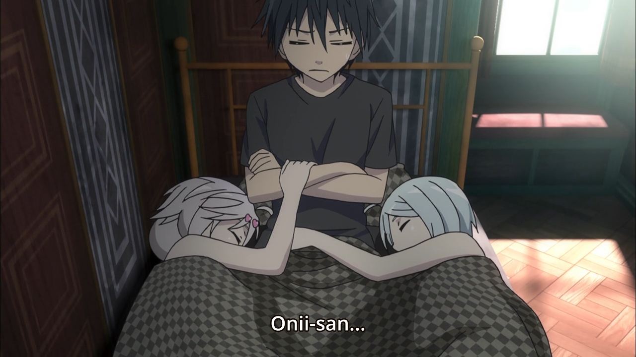 Later that same day, Kyotaro suddenly decides to barge into Nagi’s apartment. He realizes that she doesn’t actually live there. She also confesses that she’s the one sending him all those emails. Then the actual Shepherd shows up, and he wants to take Kyotaro to said mystical library in the skies… or wherever the fuck it is. And of course, Nagi isn’t the least bit happy about this. Again, I have no idea what’s going on.