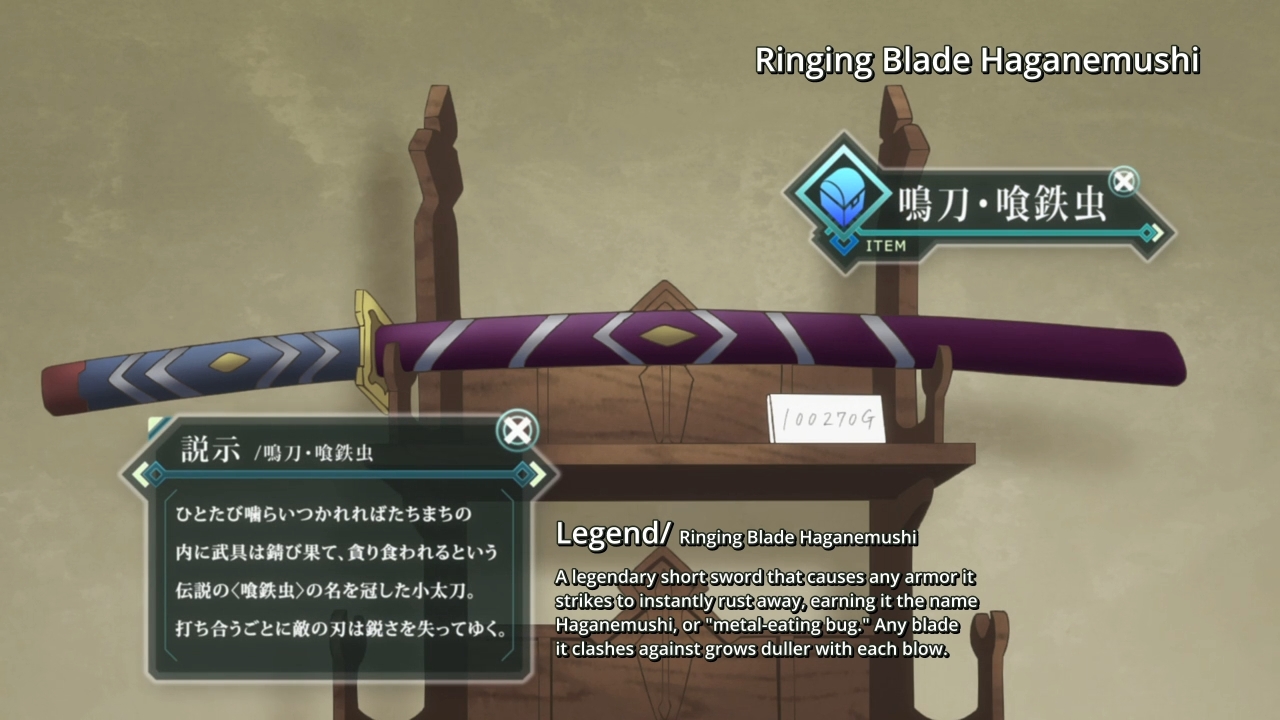 — So the Byakumaru is a raid drop, but it was just sitting in some shop, waiting to be sold? Uh, I suppose this isn’t impossible, but it’s definitely uncommon. Most developers wouldn’t want you to get your hands on a raid drop without, y’know, actually doing the raid.