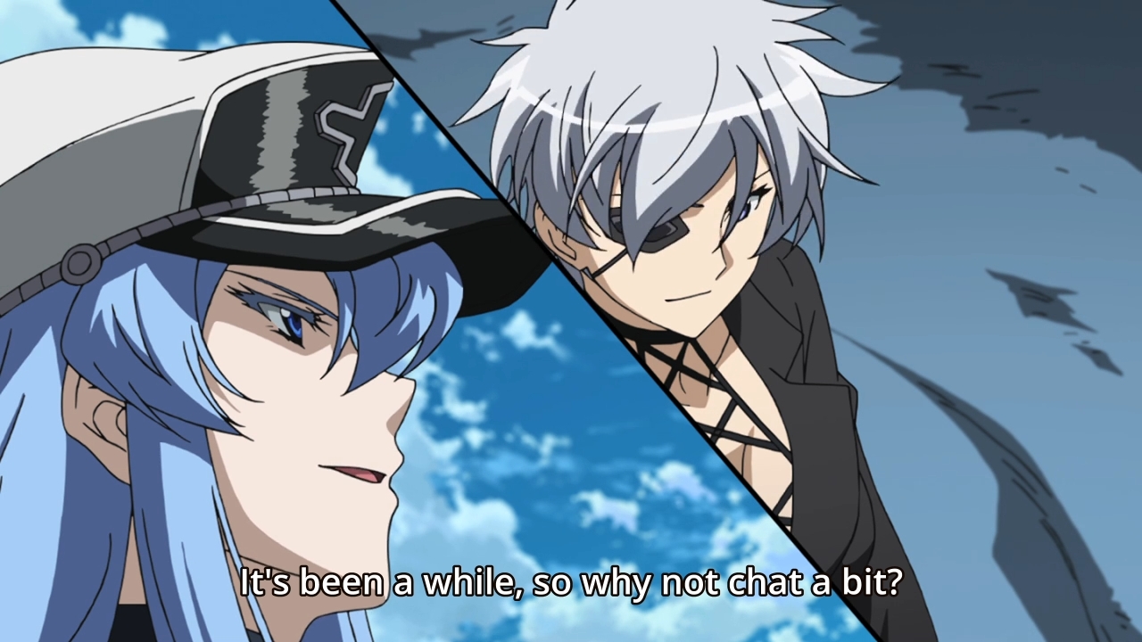 — Elsewhere, Wave seems highly perplexed at the idea that Esdeath could kill the person that she loves. I don’t think it’s a particularly difficult concept to grasp, but he’s supposed to be Tatsumi’s foil, after all. So it’s not surprising that he’s a little dense in the head. Plus, this is just a convenient excuse for Kurome to spill her guts to the guy. Apparently, she still loves her sister. Uh-huh. Sure you do. Anyway, we don’t see these two for the rest of the episode, so as you can see, they’re not terribly important in the grand scheme of things.