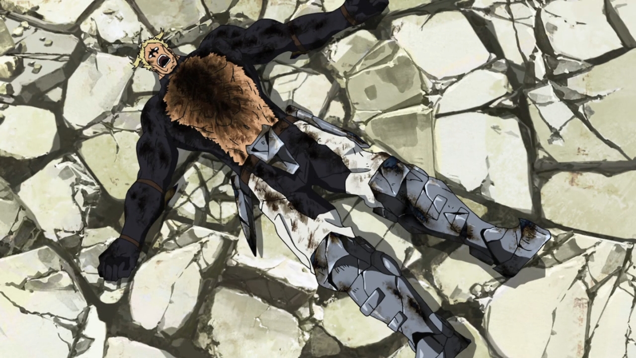 — And we get random crucifixion imagery for no reason. Maybe Tatsumi is really anime Jesus. And hey, he and his group are butting heads with an empire that is on its last legs… and hell, we’re even in a coliseum! What does this all mean?!