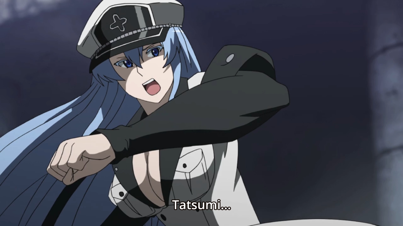 You know in the manga Esdeath wanted to keep the corpse because a dead Tatsumi can’t say no, right? But seriously though I think the whole part of her knowing where to strike her foe and keep him alive meant that she was probably gonna fake his death but I guess I’m reading too much between the lines.
