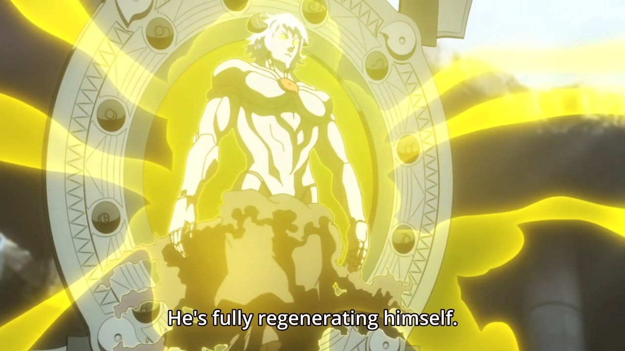 Anyway, this is where Anime diverges from the manga in a way that its hilarious because now the anime is now ahead of the manga (due to monthly chapters and story-arc skipping) and deaths of Budou and Mine being big spoilers for the manga readers (because anime and manga don’t differ in deaths so far, only in how they die) because the fight in the coliseum is still ongoing in the manga, where Mine max. damage shot couldn’t do shit to Budou.