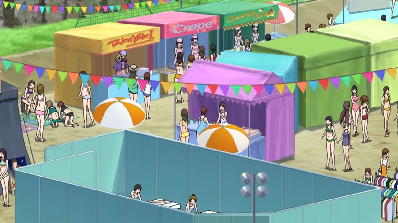 — Of course she would! ‘Cause look! Arzenal is now a tropical paradise! And since Normas are conveniently all girls — girls of the same weight, body type, and height, apparently — it’s eye-candy everywhere you turn. Wow!
