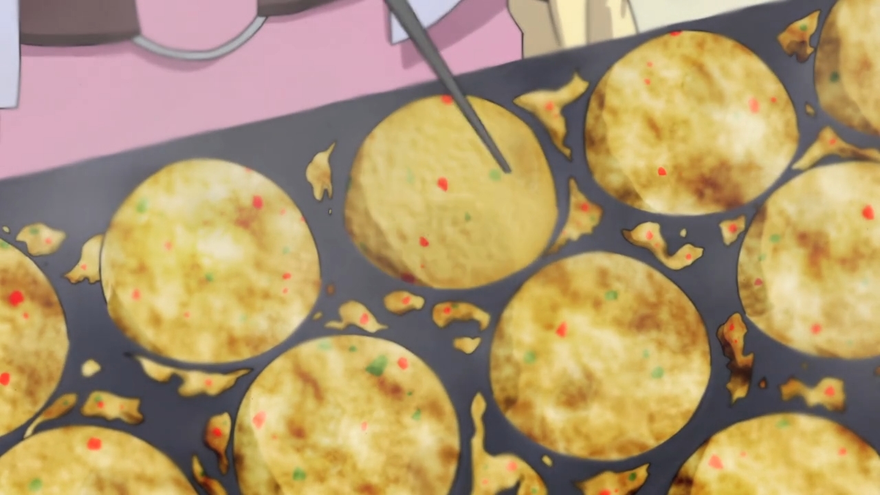 — Mm-mmm, takoyaki! The perfect delicacy to kick off the festivities! You can’t have an anime series without it!