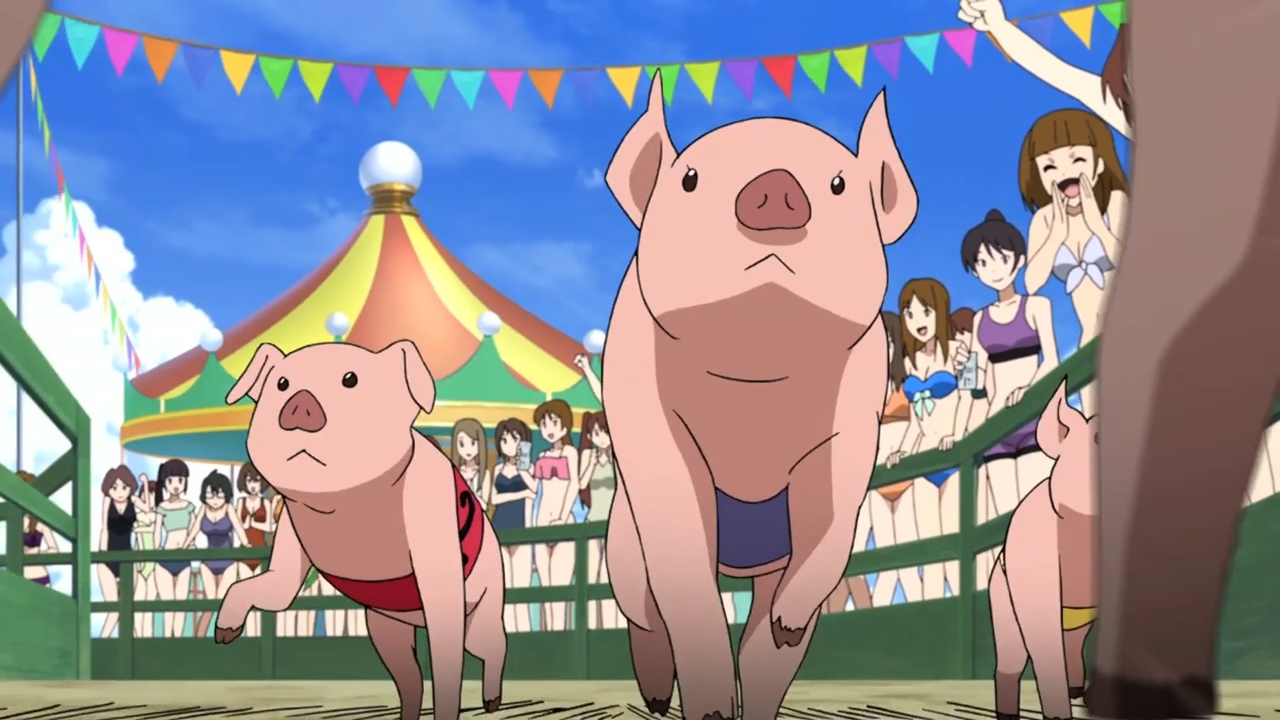 — Meanwhile, the rest of the characters are having fun competing in events like… uh, the “Bun-eating in melting swimsuits contest.” No, you don’t get to see the swimsuits melt. Don’t ask.