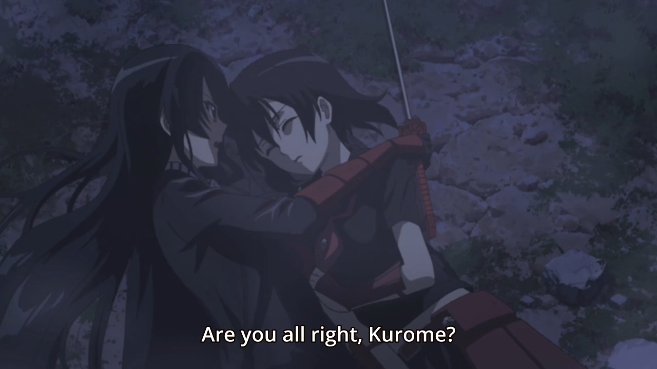 Not only that, Akame’s sword didn’t “curse” her, that is, we didn’t see that black mumbo jumbo text crawl over Kurome. Unless Akame turned off the curse, which would mean that she liked to curse people whom she’s killed, making her even more reprehensible.