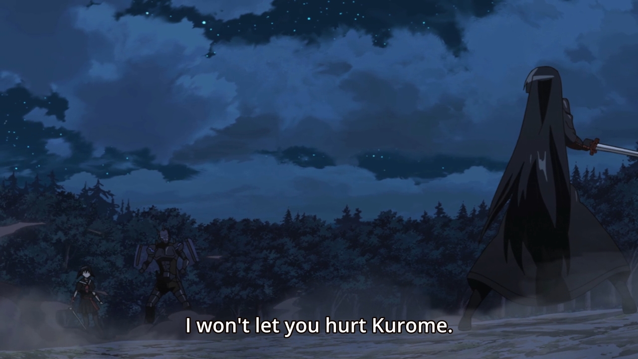— We get to watch this farce where the two sisters work together one last time to overcome this new and sudden challenger. The whole thing barely takes up a minute before Akame and Kurome are at each other’s throats yet again. I don’t know why the story even bothered. Just to show us that they work well together even though they’re enemies? Who gives a shit?