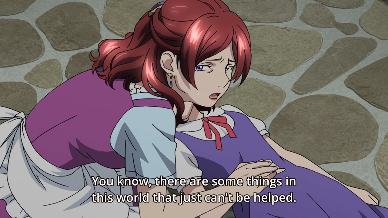 The cheesiness and ham-fistedness aside, I actually found Hilda’s part of the episode more interesting than Ange’s (which was the more predictable one). It’s a rather cruel hark back to that line Ange tells the mother of that baby back in episode 1 (again, the ham-fisted attempt aside).