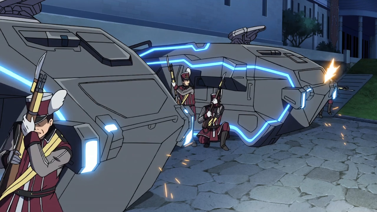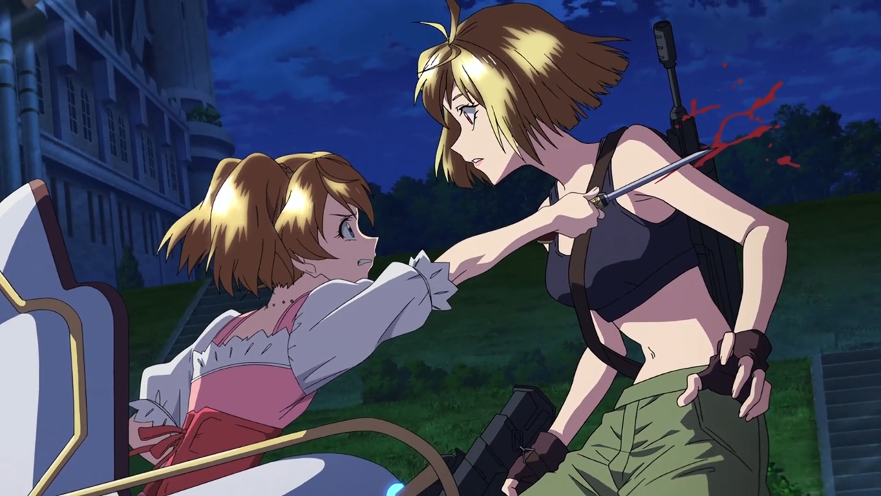 — Our princess has reached the palace grounds, and we even get to see her open fire on the bad guys. But that’s only because Sylvia is begging for her sister’s help. Uh, shouldn’t you find that a bit… peculiar? Why is Sylvia even here? Anyway, nobody dies because Ange has the aim of a stormtrooper.